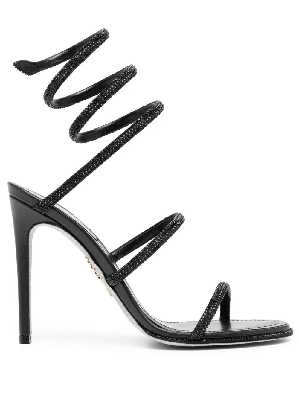 110mm Cleo sandals Highlights - Black - Crystal embellishment - Stiletto heel - Branded insole Made in Italy Composition Lining: Leather 100% Outer: Satin 100% Sole: Calf Leather 100% SIZE & FIT Measurement HEEL 4.33 in(11 cm)