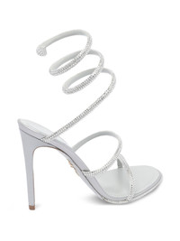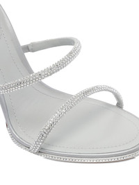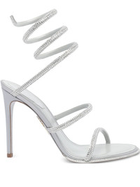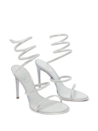 105mm Cleo heeled sandals Highlights - Silver-tone - Crystal embellishment - Spiral ankle wrap - High stiletto heel - Open toe Made in Italy Composition Lining: Leather 100% Outer: Fabric 100%, Strass 100%, Leather 100% Sole: Leather 100%, Glitter 100% SIZE & FIT Measurement HEEL 4.13 in(10.5 cm)