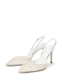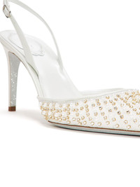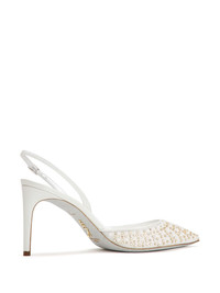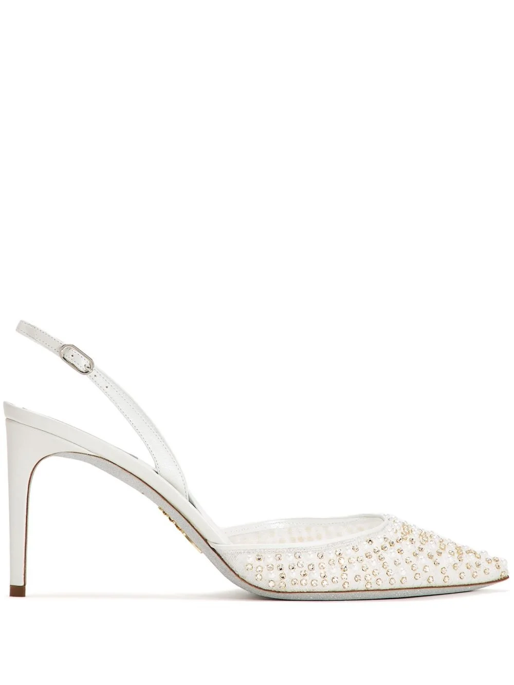 crystal-embellished pumps Highlights - White - Buckle-fastening slingback strap - Pointed toe - Rhinestone embellishment - High stiletto heel Made in Italy Composition Lining: Calf Leather 100%, Fabric 100% Outer: Fabric 100% Sole: Calf Leather 100%