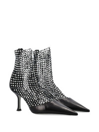 crystal-embellished sock boots Highlights - Black - Calf leather - Open knit - Crystal embellishment - Pointed toe - Mid heel - Rear zip-fastening pocket - Leather outsole Made in Italy Composition Outer: Fabric 100%, Calf Leather 100% Lining: Fabric 100% Sole: Calf Leather 100%