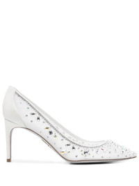 80mm Cinderella pumps Highlights - White - Stiletto heel - Rhinestone embellishment - Bead embellishment - Pointed toe Made in Italy Composition Sole: Polyurethane 100% Lining: Calf Leather 100%, Fabric 100% Outer: Fabric 100%, Calf Leather 100% SIZE & FIT Measurement HEEL 3.14 in(8 cm)