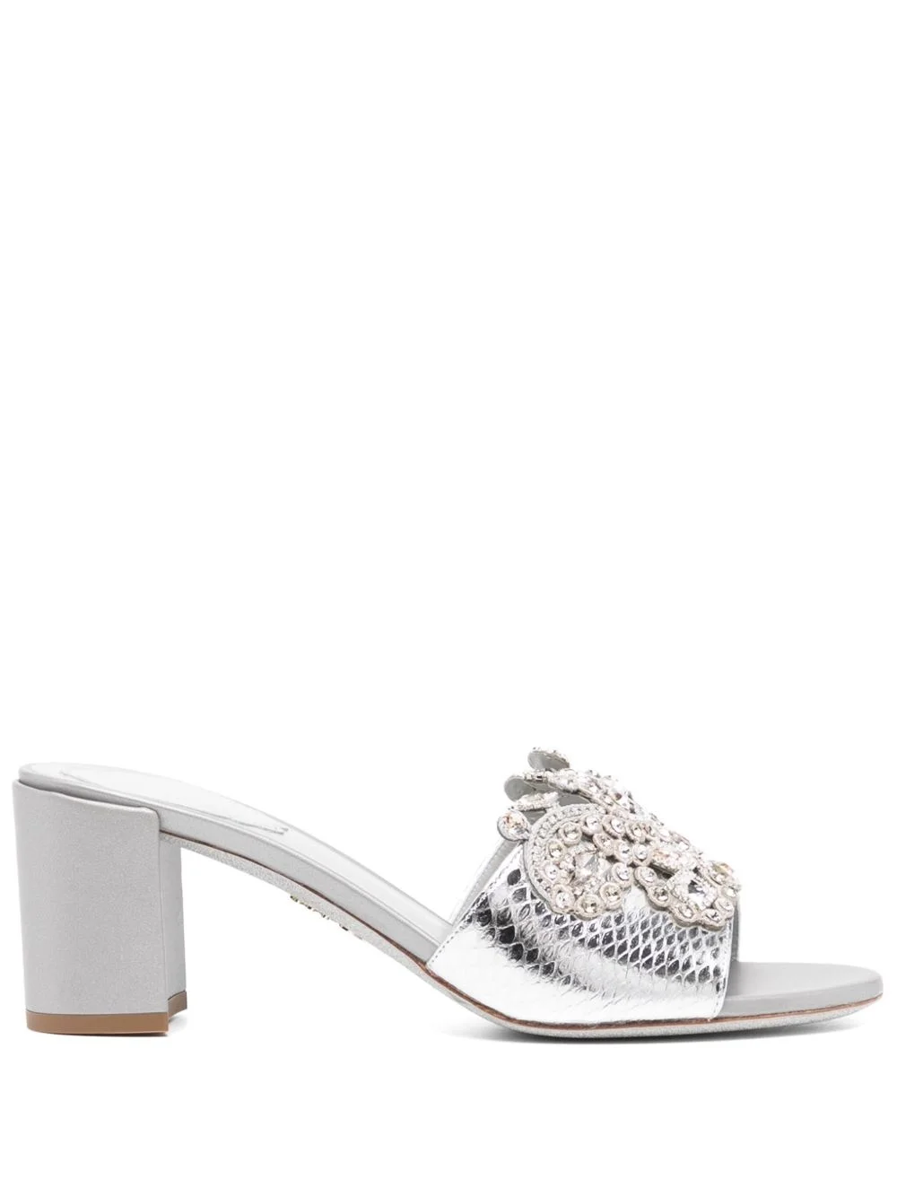 crystal embellishment sandals Highlights - Light grey - Crystal embellishment - Open round toe - Branded footbed - Slip-on style Made in Italy Composition Outer: Calf Leather 100% Sole: Calf Leather 100% Lining: Leather 100% SIZE & FIT Measurement HEEL 2.75 in(7 cm)