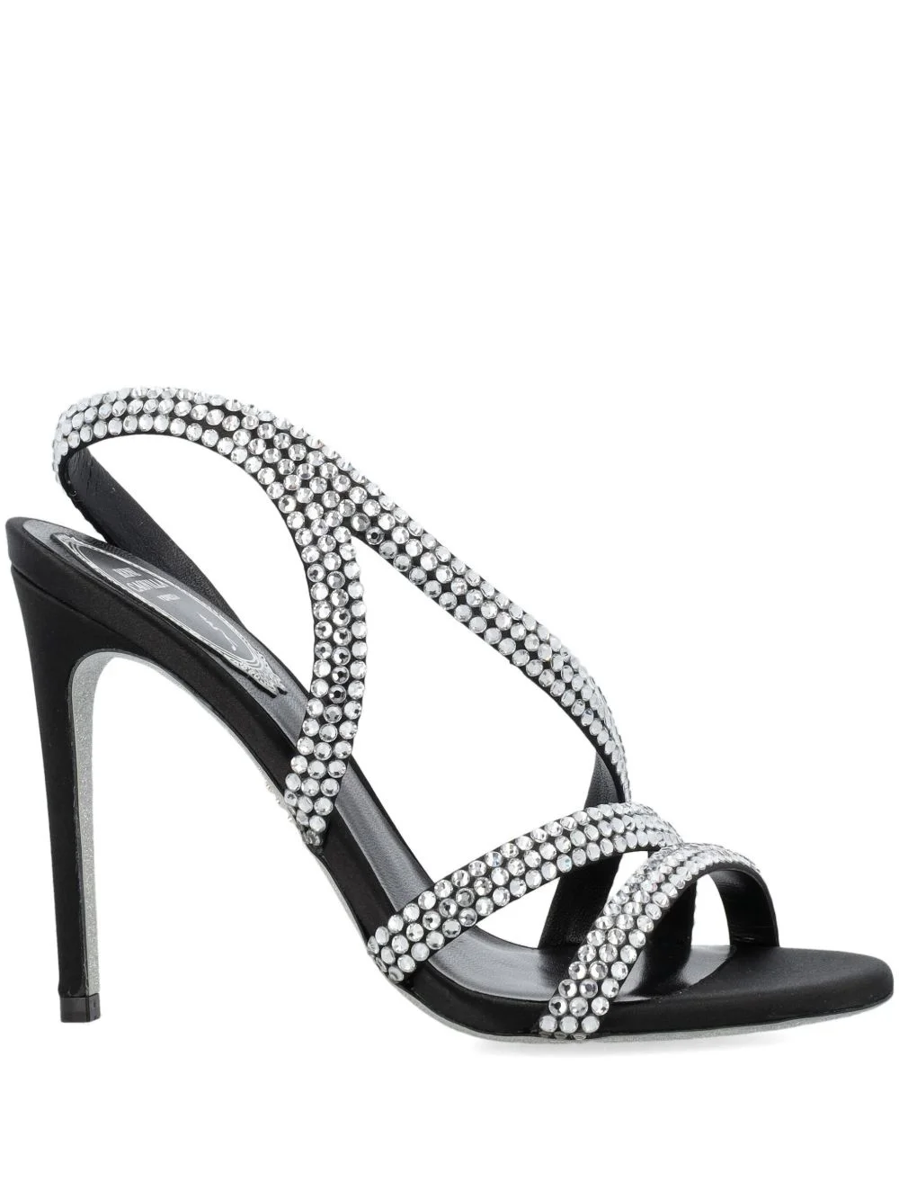 105mm Lisa sandals Highlights - Black - Satin weave - Rhinestone embellishment - Multi-way straps - Round open toe - Branded leather insole - High stiletto heel Made in Italy Composition Outer: Satin 100%, Rhinestone 100% Lining: Leather 100% Sole: Calf Leather 100% SIZE & FIT Measurement HEEL 4.13 in(10.5 cm)