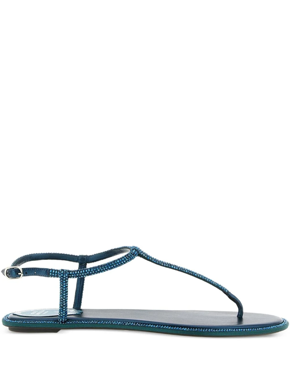 rhinestone-embellished diana sandals Highlights - Aqua green - Rhinestone embellishments - Adjustable strap - Metallic insole - Flat sole Made in Italy Composition Outer: Cotton 68%, Silk 32% Lining: Leather 100% Sole: Leather 100%