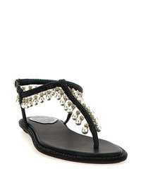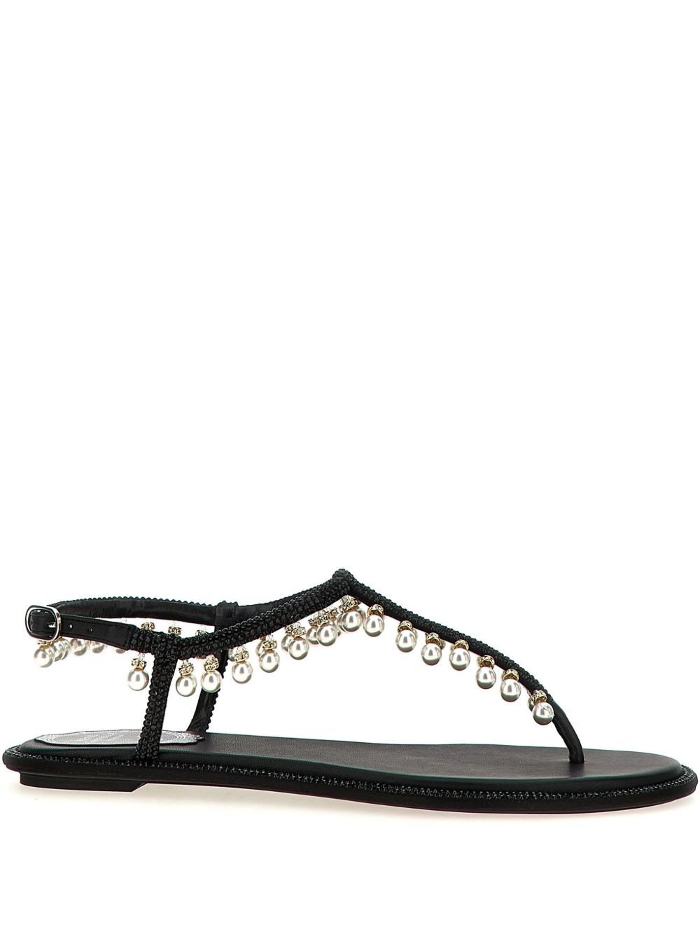 Diana sandals Highlights - Black - Thong strap - Buckle-fastening ankle strap - Almond open toe - Faux-pearl embellishment Made in Italy Composition Outer: Viscose 68%, Silk 32% Lining: Calf Leather 100% Sole: Rubber 100%
