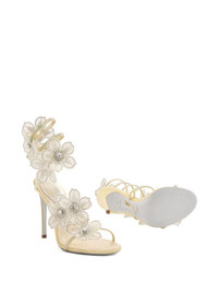 floral-embellished spiral sandals Highlights - Yellow - Floral embellishment - Spiral ankle strap - Open toe - Stiletto heel - Toe strap Imported Composition Outer: Viscose 68%, Silk 32% Lining: Calf Leather 100% Sole: Calf Leather 100%, Rubber 100% SIZE & FIT Measurement HEEL 4.13 in(10.5 cm)