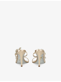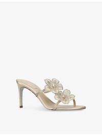 PRODUCT DETAILS - Rene Caovilla satin heeled sandals - 100% satin - Round toe, floral-applique straps, crystal embellishment, branded footbed, stiletto heel - Heel height 80mm / 3.14 inches - Wipe with a clean, dry cloth - Upper: 100% satin - Lining: 100% leather - Sole: 100% synthetic Ref: R04545915