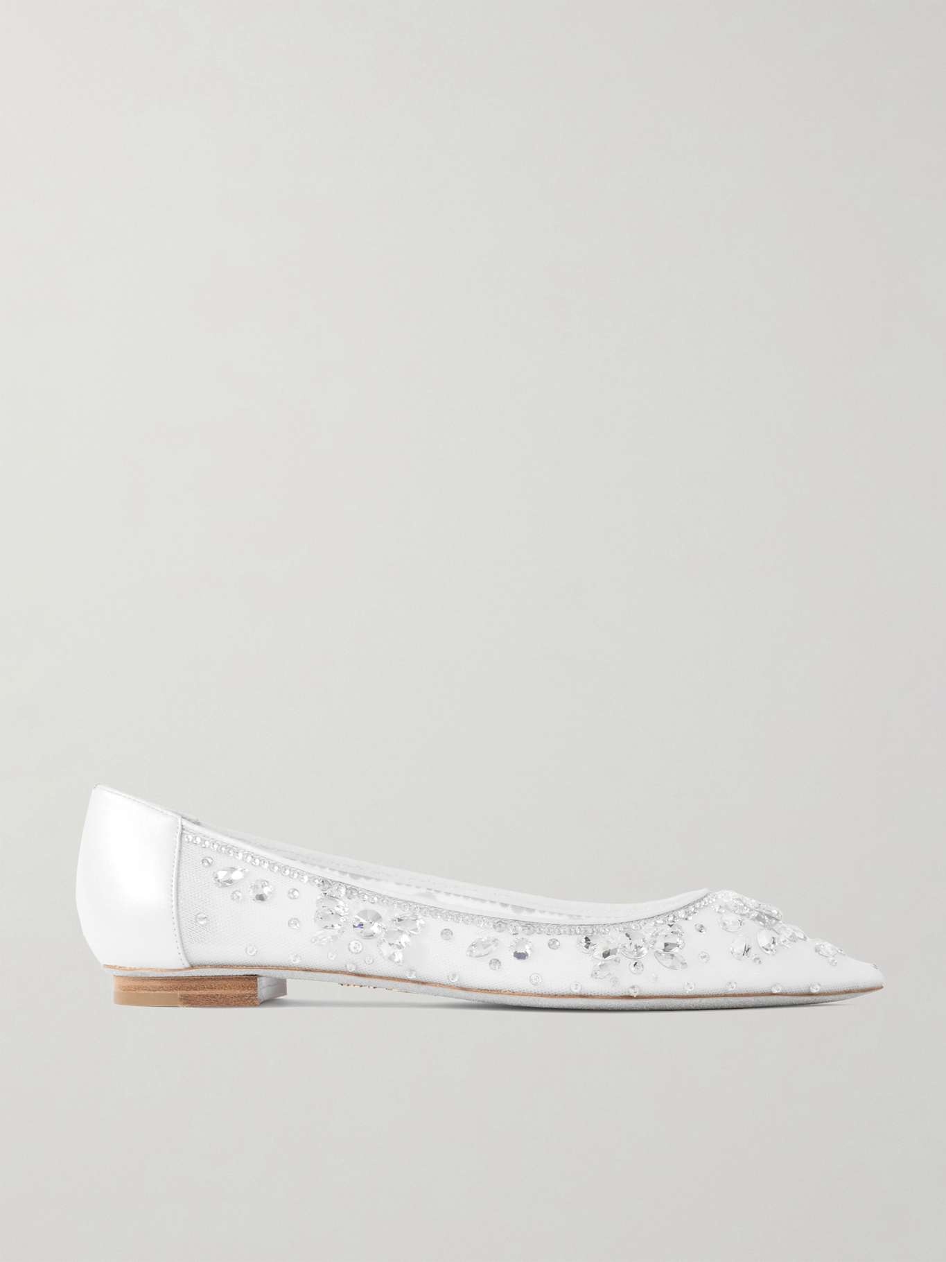 EDITORS'NOTES Rene Caovilla's flats are an equally glamorous and comfortable choice for bridal events. Detailed with elegant pointed toes, they're made from sheer tulle decorated with hand-placed crystals. The supple leather trims add just the right amount of structure. SIZE & FIT - Fits true to size, take your normal size - Italian sizing DETAILS & CARE - Slight heel - White tulle and leather (Lamb) - Slip on