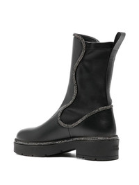 Onda boots Highlights - Black - Pull-on style - Pull-tab at the heel - Rubber sole - Crystal embellishment Made in Italy Composition Outer: Calf Leather 50%, Fabric 50% Sole: Rubber 100% Lining: Leather 100% SIZE & FIT Measurement HEEL 1.96 in(5 cm)