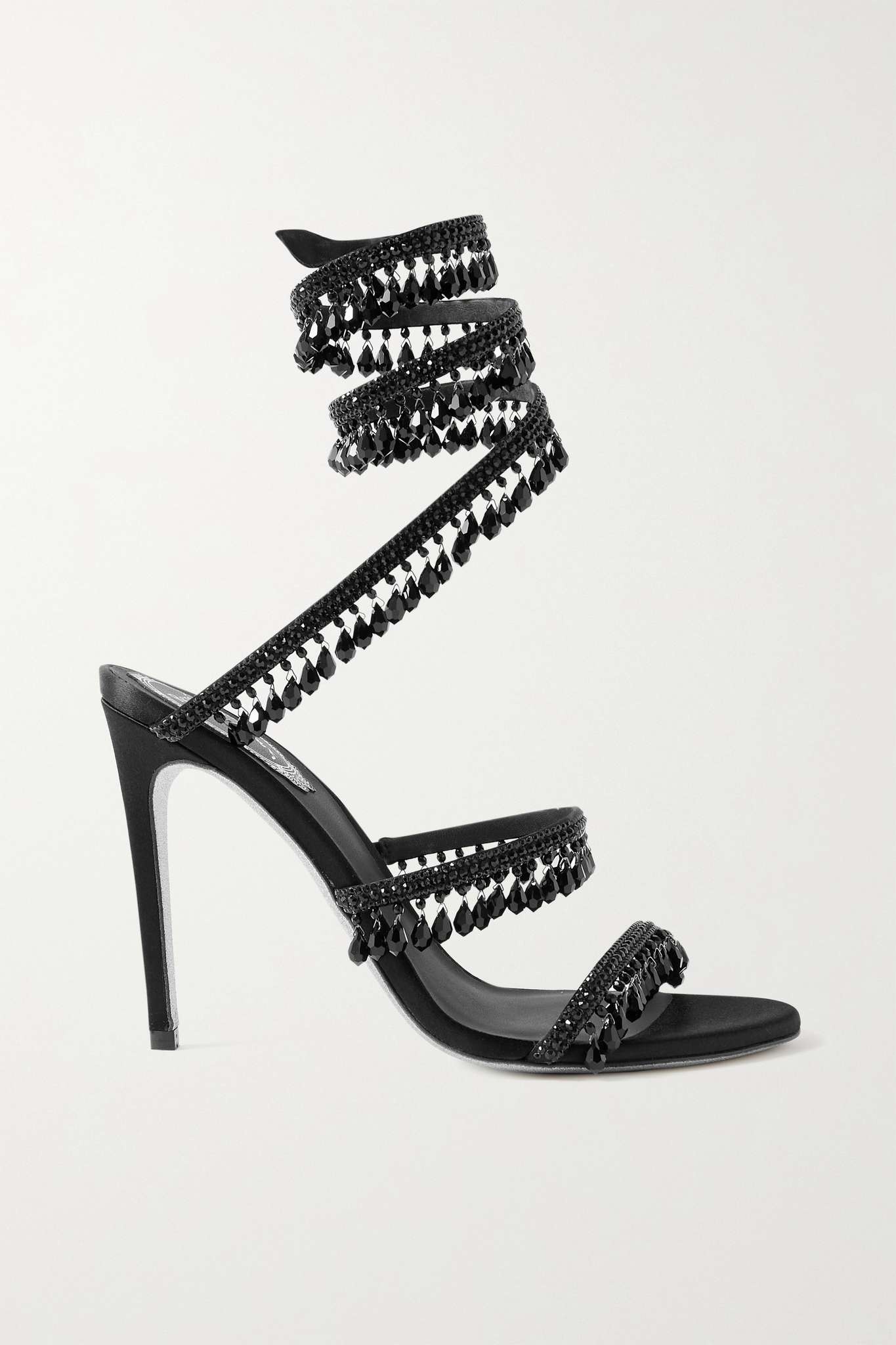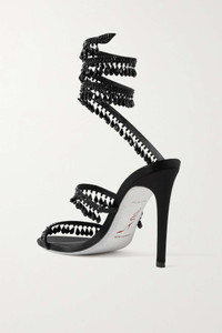 EDITORS'NOTES Edoardo Caovilla says he wants to craft 'dream-like' shoes, and these 'Cleo' sandals definitely capture his vision. They've been handcrafted at the brand's Venetian atelier from black satin and leather with a contrasting glittered sole. The twirling ankle strap is hand-embellished with rows of crystals and beads, inspired by the sparkling chandeliers you'd see at the city's balls. SIZE & FIT - Fits small to size, take a half size larger than normal - Italian sizing DETAILS & CARE - Heel measures approximately 40mm/ 1.5 inches - Black satin and leather (Calf) - Slip on Small to size. See Size & Fit notes.