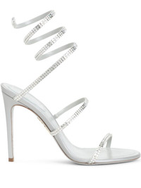 105mm Cleo satin sandals Highlights - Silver-tone - Ankle strap - Crystal embellishment - Stiletto heel - Branded insole Made in Italy Composition Sole: Glitter 100% Lining: Calf Leather 100% Outer: Polycarbonite 100%