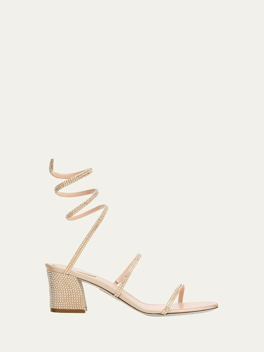 Snake Ankle-Wrap Strass Satin Block-Heel Sandals