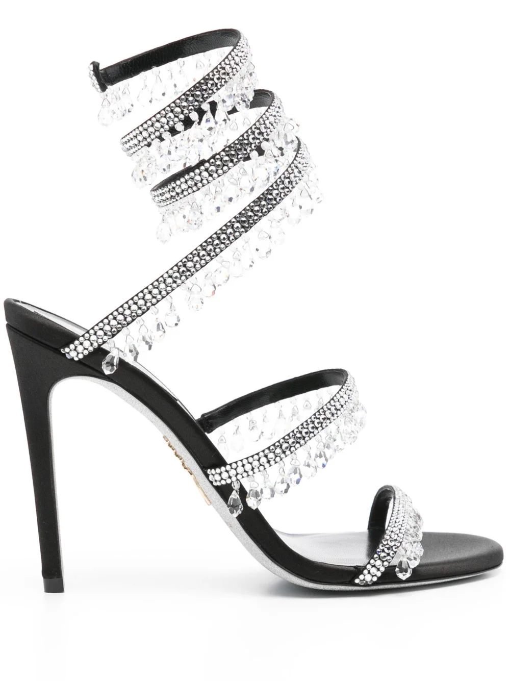 105mm Cleo sandals Highlights - Black - Satin weave - Double-strap design - Crystal-embellished ankle strap - Bead detailing - Round open toe - Branded leather insole - 105mm stiletto heel - Glitter detailed leather sole Made in Italy Composition Lining: Calf Leather 100% Outer: glass 100%, Fabric 100% Sole: Calf Leather 100%, Glitter 100%, Rubber 100% SIZE & FIT Measurement HEEL 4.13 in(10.5 cm) HEIGHT 3.93 in(10 cm) Sole height 0.39 in(1 cm)