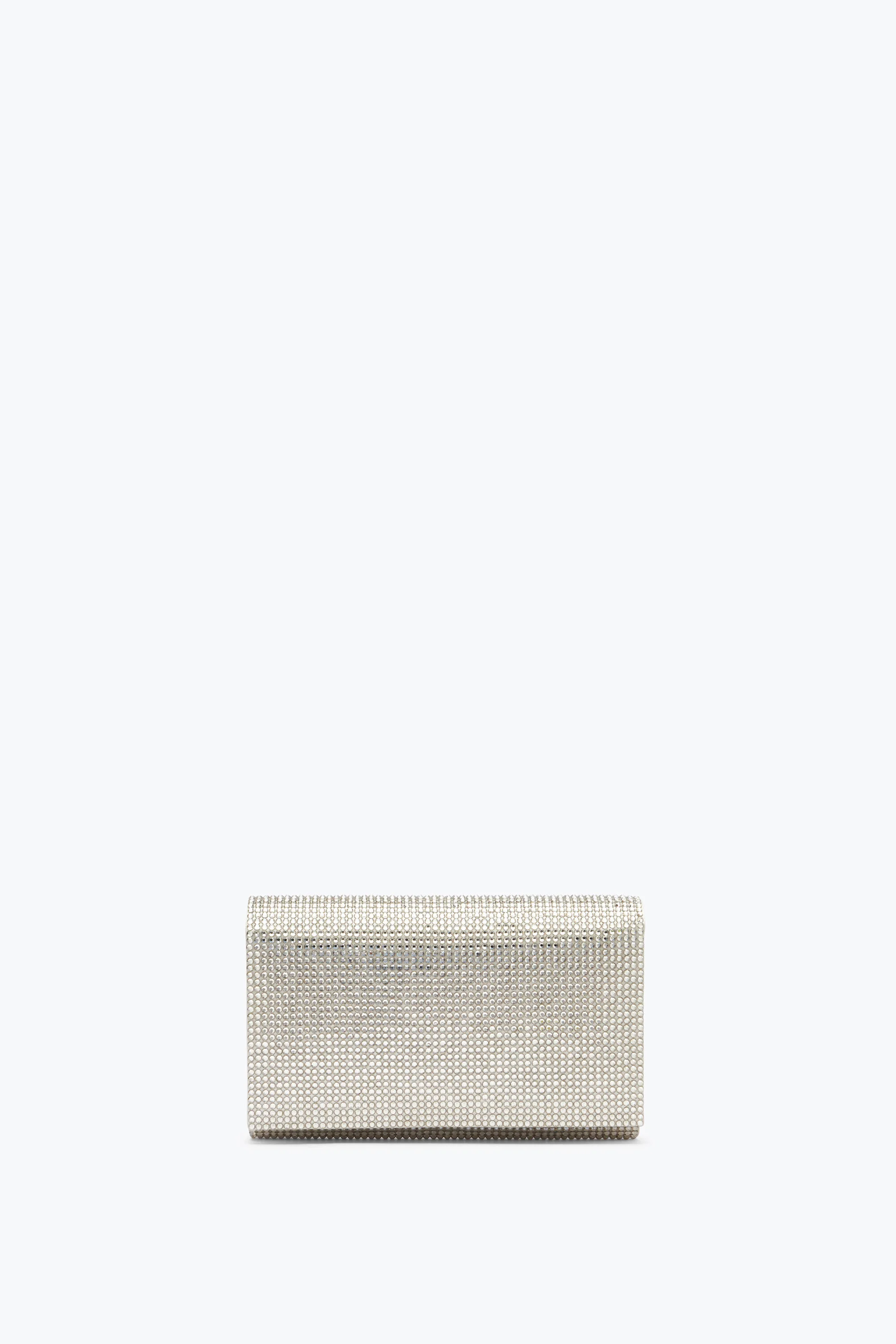 This silver jewel clutch bag AIDA is an elegant and refined model, distinguished its unmistakable Made in Italy design. This satin clutch is decorated matching rhinestones and it features a removable shoulder strap. Perfect for adding a touch of light to a total black look, it can embellish the most sophisticated outfits. Ref. B01400-R001V232