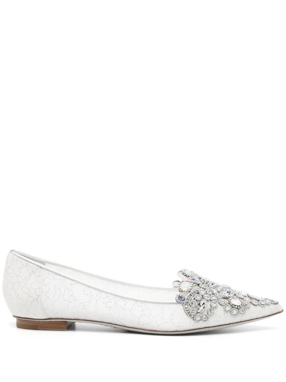 Veneziana crystal ballerina shoes Highlights - White - Satin weave - Lace overlay - Crystal embellishment - Branded insole - Pointed toe - Flat sole Made in Italy Composition Sole: Rubber 50%, Calf Leather 50% Lining: Satin 100% Outer: Satin 100% SIZE & FIT Measurement HEEL 0.39 in(1 cm) HEIGHT 2.75 in(7 cm)
