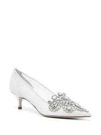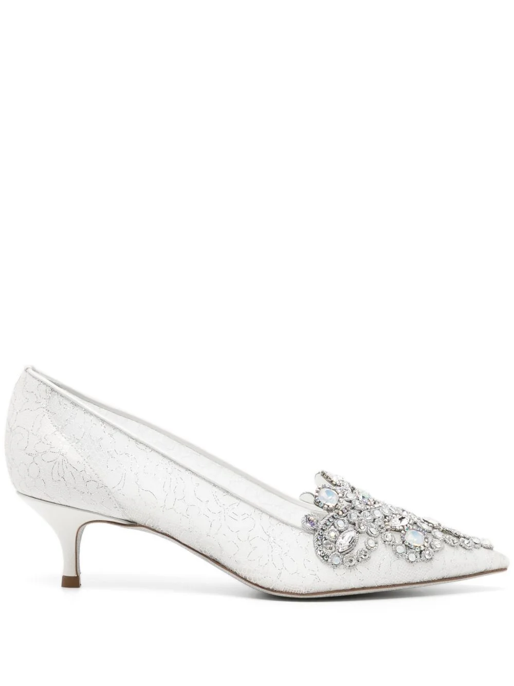 Veneziana crystal kitten-heel pumps Highlights - White - Satin weave - Lace overlay - Crystal embellishment - Pointed toe - Branded insole - Kitten heel Made in Italy Composition Sole: Calf Leather 50%, Rubber 50% Lining: Satin 100% Outer: Satin 100% SIZE & FIT Measurement HEEL 2.16 in(5.5 cm) HEIGHT 2.75 in(7 cm)