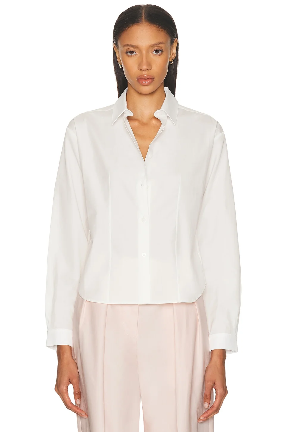 Details - 100% cotton - Machine wash - Front button closure - Button cuffs - Cropped design - Lightweight poplin fabric - Garment is made with a semi-sheer fabric, undergarments can show through - Made in Italy - Our Style No. RGLF-WS46 - Manufacturer Style No. RE0725T15-T009