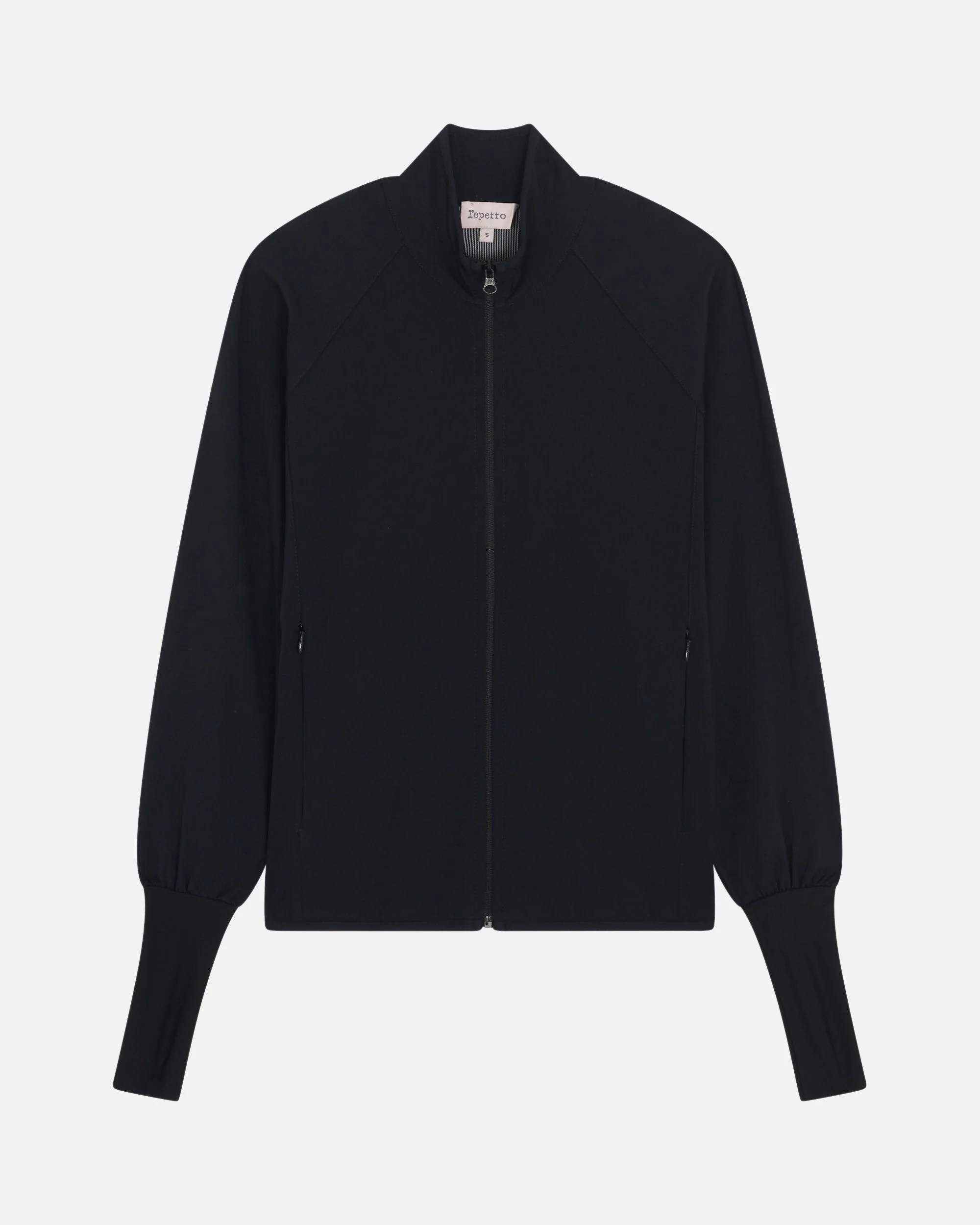 This technical jacket is made of a soft and breathable stretch knit for maximum comfort and a sporty-chic look. Its fishnet cut on the back adds femininity to the model, for a graphic and modern silhouette. Material: Active Soft Mesh Composition: 73% Polyamide - 27% Elastane / Mesh back yoke: 60% Polyamide - 40% Elastane / Sleeve yoke: 76% Polyamide - 24% Elastane Color: Black Details: Fishnet yoke on the back. Invisible zip on the front. Zipped side pockets. Satin effect cuffs. Pearl effect R circle logo transfer. The model is 1,75m and wear a S size. Ref: S0593-410-XS Product details Fishnet yoke on the back. Invisible zip on the front. Zipped side pockets. Satin effect cuffs. Pearl effect R circle logo transfer.