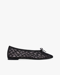 Inspired by the iconic Cendrillon, the Lilouh ballet flat, with its enveloping lines and oval neckline that affines your foot, is a must-have in any wardrobe. This season, we created a unique new Lilouh in mesh and sequins. Made in France, using the stitch-and-return artisanal know-how and featuring a resistant rubber sole, the Lilouh combines unique comfort with elegance. Material : Textile Color : Black Heels height : 1cm Original country : France Detail : Cowhide leather insole. Cotton lining. Leather wrapped heel. Stitch-and-return. Natural rubber sole. Benefit of the chosen manufacturing method: The stitched-and-turned construction is the historic manufacturing process of the Maison, developed by Madame Rose Repetto in 1947. The sole is stitched on inside out before being turned right side out. This obvious choice results in a flexible and emotive design. Ref: V4096RESEQ-410-35 Product details Cowhide leather insole. Cotton lining. Leather wrapped heel. Stitch-and-return.Natural rubber sole.