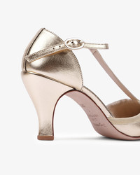 Inspired by ballroom dancing, the Baya t-straps shoes are reminiscent of femininity and movement, two essential values of the Maison of dance. Lauded for its comfort, this design, with its superb toebox and shank, also guarantees perfect support for the foot. Material: metallized lambskin Color: light gold Heels height: 7 cm Original country: Portugal Details: insole and lining in lambskin leather. Tone-on-tone leather wrapped heel. Butt leather sole. Louis XV lasting. Sacchetto construction. Ref: V1473AGMD-418-36 Product details Lambskin insole and lining. Wrapped heel. Louis XV lasting. Butt leather sole. Sacchetto construction.