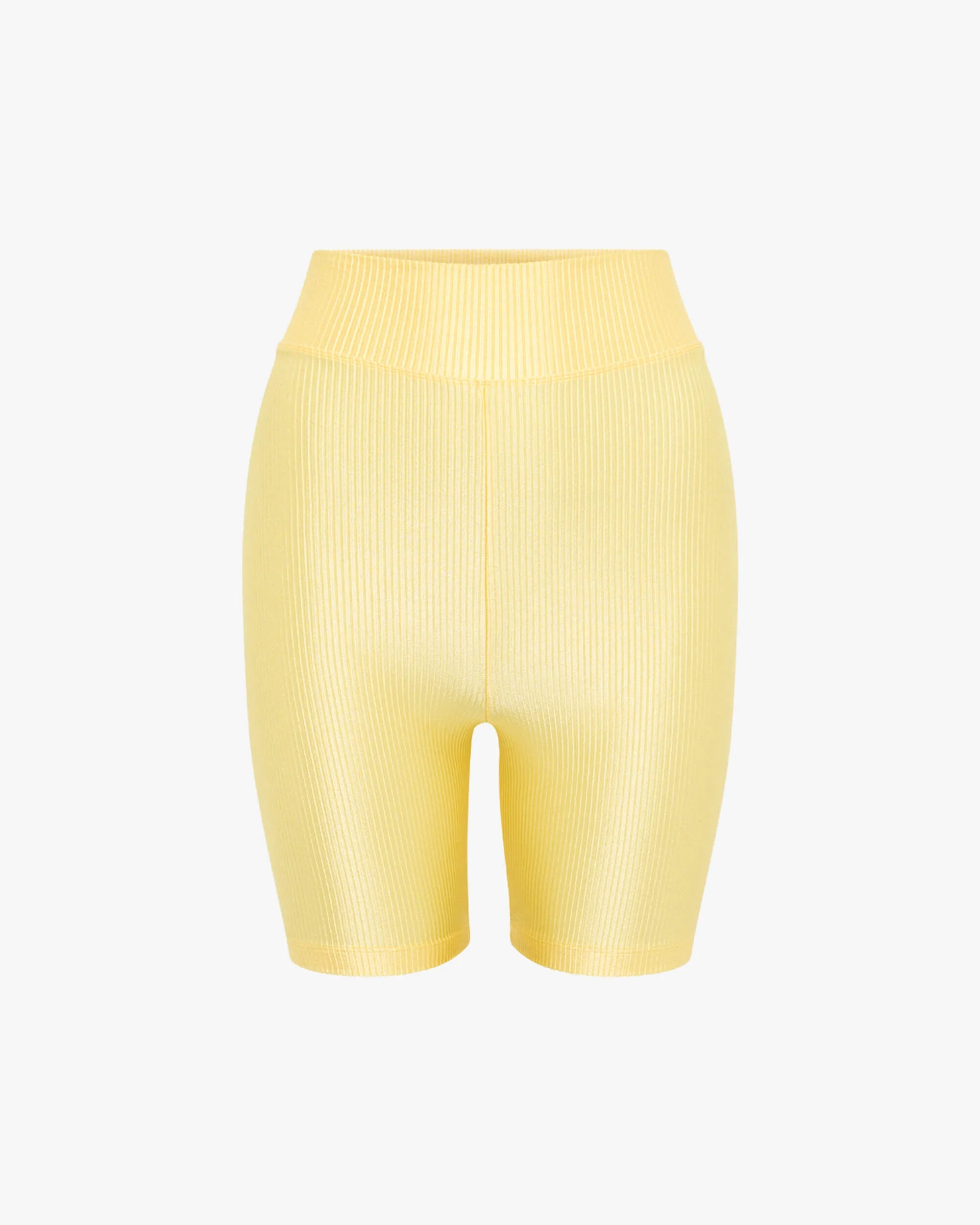 With its ribbed and satin finish, this fabric provides optimal support and sculpts the silhouette, while its quick-drying and sweat-resistant properties ensure comfort and performance. Emblematic of dance, this material in pop colors is a true testimonial of the energy of the 80s. Material: Polyamide 85% Polyamide - 15% Elastane Color: Limoncello Yellow Details: Embrace the vibrant and colorful spirit of the 80s with our Dance with Repetto capsule. A fusion of retro sophistication and elegance to accompany your every move with style. Iconic piece of retro sportswear wardrobe, these biker shorts are designed to provide freedom of movement, thanks to their wide waistband and minimalist cutouts. • Large waistband • High waist Ref: S0709-1493-XS