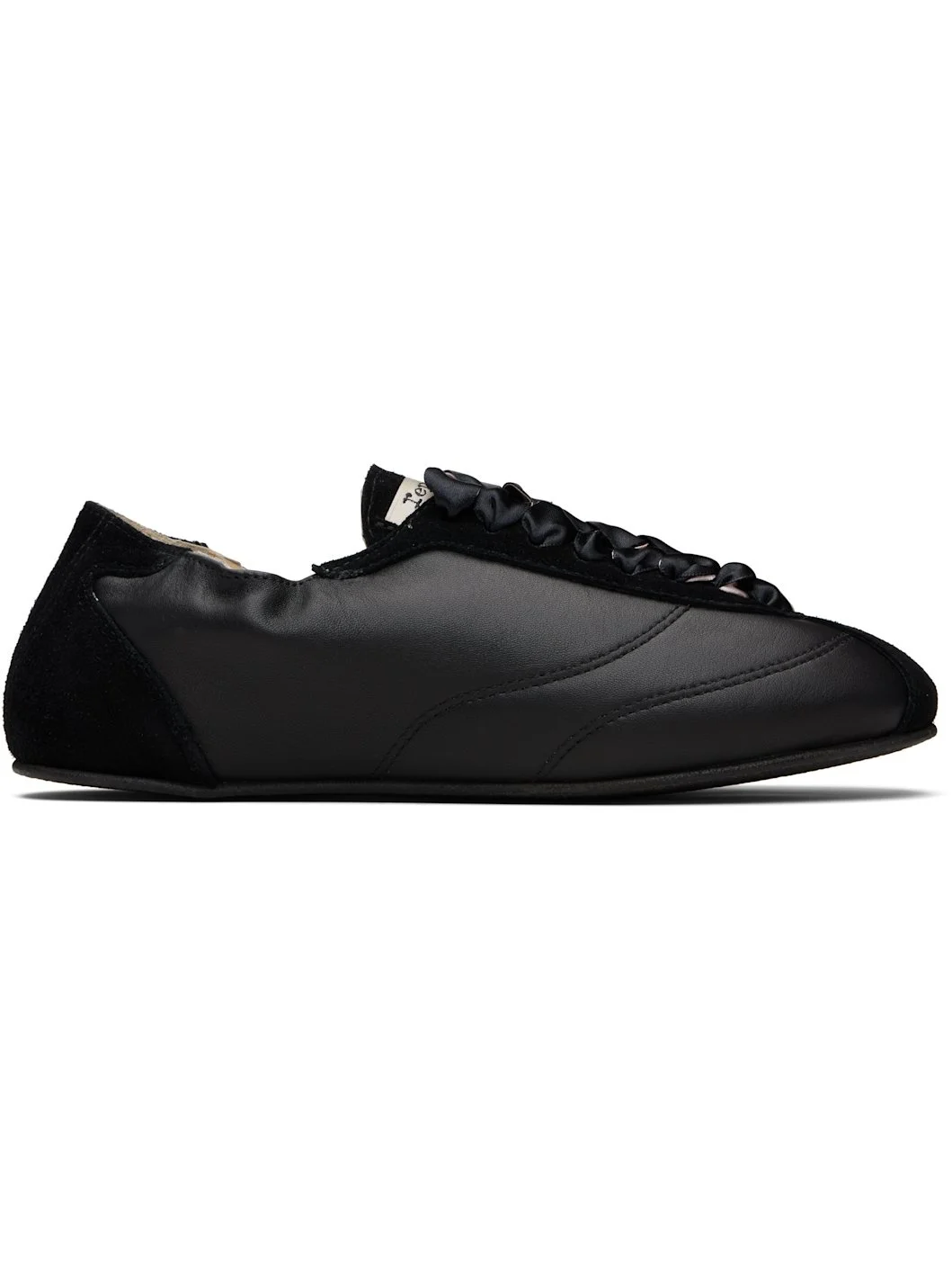Low-top grained sheepskin and goatskin suede sneakers. · Lace-up closure · Logo patch at tongue · Elasticized collar · Buffed lambskin lining · Crepe rubber sole Supplier color: Black Upper: sheepskin, goatskin. Sole: rubber. Made in Tunisia 251296F128003