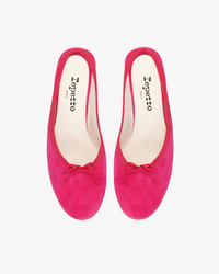 Repetto revisits its great successes by transforming its ballerina into a mule version with a small heel. Inimitable suppleness, signature lace and grosgrain trim place this new model in the great tradition of Repetto's iconic designs. Made in France, using the stitch-and-return artisanal know-how, mules Camille combines unique comfort with the elegance of liberated femininity. Material: Goatskin suede Color: Raspberry Pink Heels height: 3 cm Original country: France Details: Cowhide leather insole. Cotton lining. Stitch-and-return. Leather sole. Benefits of the selected manufacturing process: Stitch-and-return is the historical manufacturing process of Maison Repetto, developed by Madame Rose Repetto in 1947. The sole is sewn inside out before being turned inside out. This is an obvious way to create a flexible and emotional model. Ref: V4183CV-1448-35 Product details Cowhide leather insole. Cotton lining. Stitch-and-return. Leather sole.