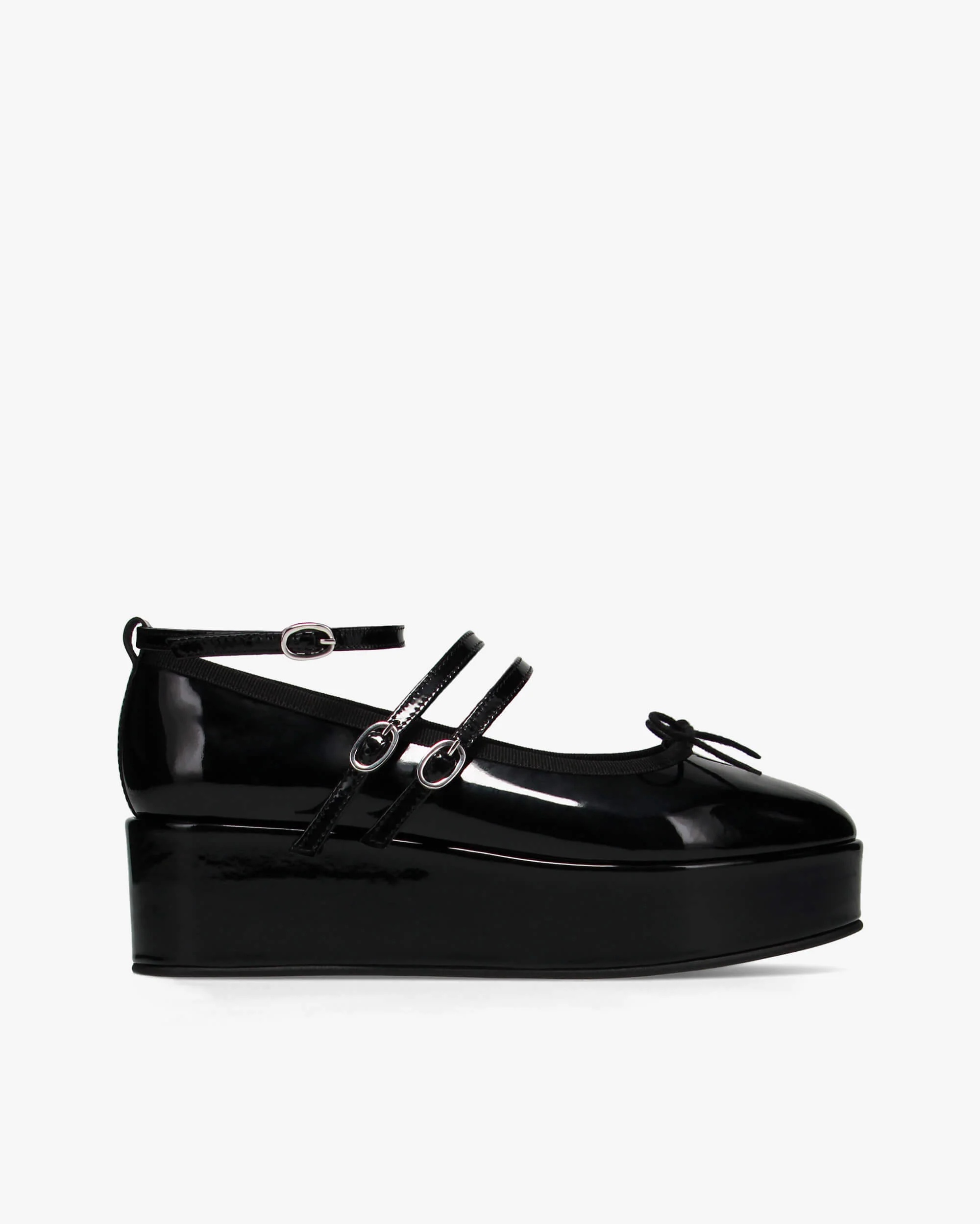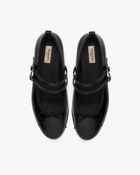 A creative and daring reinterpretation of the iconic Cinderella model, these platform babies have a contemporary and captivating look. With two elegant removable patent straps, Cendrillon platform signs a unique femininity with a touch of irreverence. Material: Patent leather Color: Black Heels height: 5 cm Original country: Portugal Details: Insole and lining in lambskin. Cemented lasting. Rubber sole. Removable patent straps. Ref: V4177VD-410-35 Product details Insole and lining in lambskin. Cemented lasting. Rubber sole.