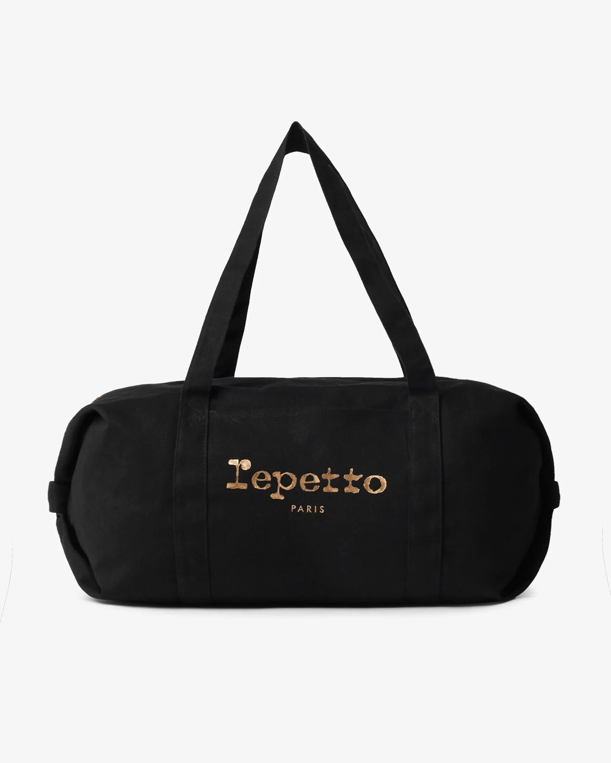 The big duffle bag is a traditional model in the dance bags collection. The long handles allow you to carry it on your shoulder and the large size helps to carry all the dance clothes. The pink gold marking and finishes, and the identity colors of canvas, make it as a purified bag, with fancy, refined and elegant touches. Authentic must-have for all the passionate, it will accompany the women and the young dancers in all their travels. Restyled each season in different fabrics and colors, it will go perfectly with the different looks of each woman. Material: Cotton Color: Black Dimensions: Height 24 cm x Width 49 cm x Depth 25 cm Carried: Shoulder Details: Zipper fastening. Front patch pocket. Knots on sides. Pink gold Repetto logo. An interior zippered pocket. No lining. Ref: B0233T-410 Product details Zipper fastening. Front patch pocket. Knots on sides. Pink gold Repetto logo. An interior zippered pocket. No lining.
