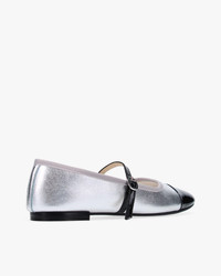 Reinterpreting the emblematic Georgia mary-janes in a version with a contrasting toe cap, the Georgiana offers a play on materials and colors. Made in France using the artisanal stitch-and-return know-how, these mary-janes ensure the suppleness and comfort, peculiar to Repetto's identity. Its thin strap enhances its feminine, delicate and elegant look. Material: Cowhide Color: Black/Silver Heels height: 1cm Original country: France Details: Cowhide leather insole. Cotton lining. Stitched and returned. Rubber sole. Benefits of the selected manufacturing process: Stitchandreturn is the historical manufacturing process of Maison Repetto, developed by Madame Rose Repetto in 1947. The sole is sewn inside out before being turned inside out. This is an obvious way to create a flexible and emotional model. Ref: V4222VVEM-476-34 Product details Reinterpretant l’emblematique babies Georgia en une version avec un bout rapporte et contraste, la Georgiana permet un jeu de matieres et de couleurs. Fabriquee en France selon le savoir-faire artisanal du cousu-retourne, cette babies assure souplesse et confort, propre a l’identite Repetto. Sa fine bride vient la sublimer pour une allure feminine, delicate et elegante.