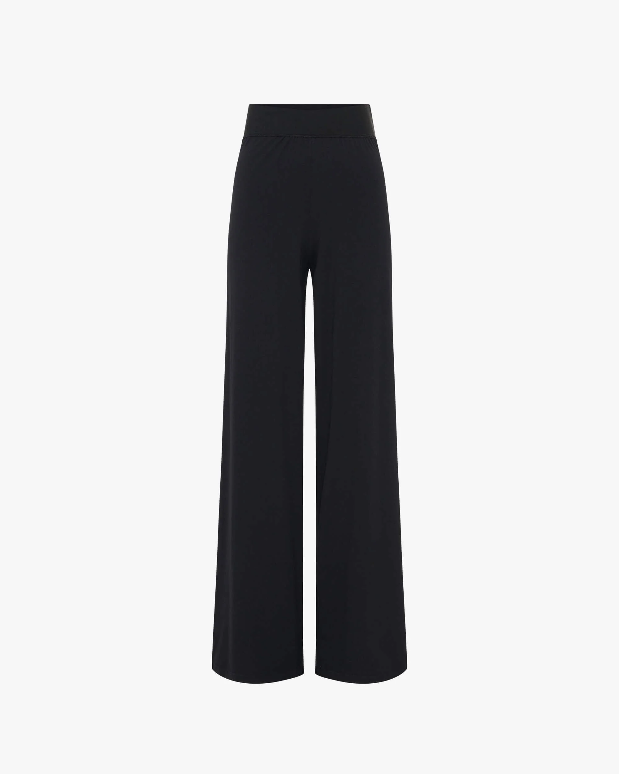 These high-waisted pants are soft and easy to move with, thanks to their loose fit and elasticated waistband. The drawstring at the bottom of the leg can be worn straight or tight. High waist and loose fit Wide elastic waistband Elastic drawstring at bottom of legs Outside leg length 110 cm (for a S)Material:Viscose elasthanne Composition:95% Viscose - 5% Elastane Color:Black Original country:Portugal Ref: S0559-410-XS Product details Viscose pants. Loose fit. Wide elastic waistband. Elastic drawstring at the bottom of the legs. R logo in transfer on the side. Repetto label on back.