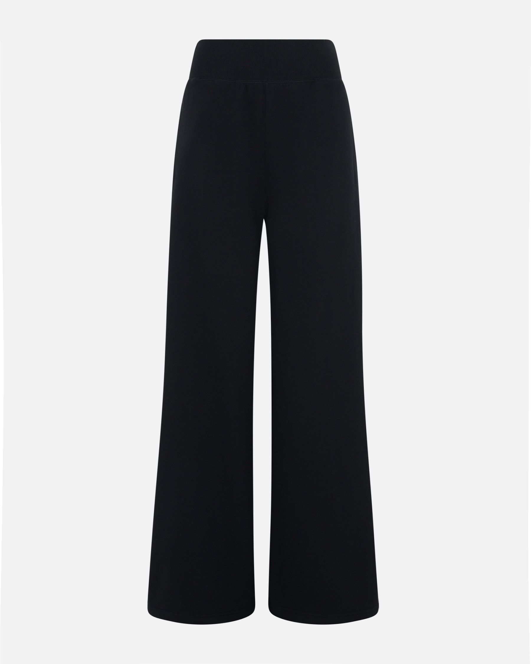 With its casual style, these pants are an urban version of jogging pants. Its straight cut lengthens the silhouette while its material, a stretchy fleece with a scratchy interior, offers a feeling of well-being. Material: Interior brushed fleece Composition: 89% Cotton - 11% Polyester / Waist: 95% Cotton - 5% Elastane Color: Black Original country: Portugal Details: High waist. Straight and loose shape. Side pockets.
