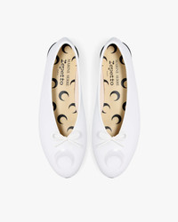 Repetto and Marine Serre celebrate shared values: the elegance of movement, a commitment to sustainability and a harmonious balance between heritage and modernity.The Lilouh ballerina is embossed in the leather with Marine Serre's signature All Over the Moon.Manufactured using the cousu-retourne method in Repetto's Dordogne workshops, this exclusive collaboration celebrates exceptional craftsmanship and the visionary spirit of the French.Material : Calf leatherColour : WhiteHeel height : 1 cmCountry of origin : FranceDetails : Calfskin leather insole. Cotton lining. Leather wrapped heel. Turnback stitching. Leather sole. Ref: V4234VE-050-39 Product details Cowhide leather insole. Cotton lining. Leather wrapped heel. Stitch-and-return. Leather sole.