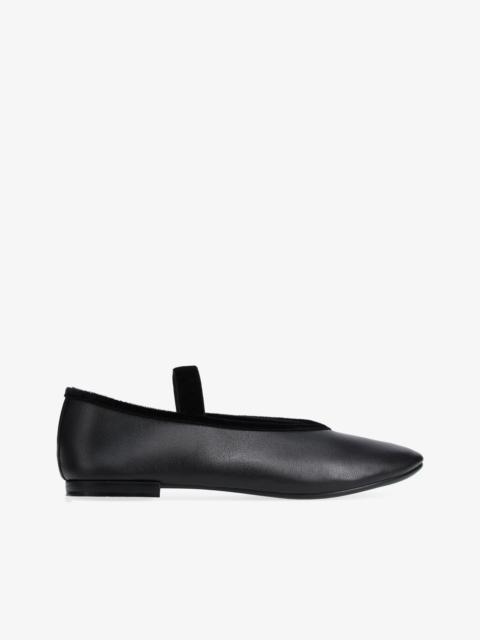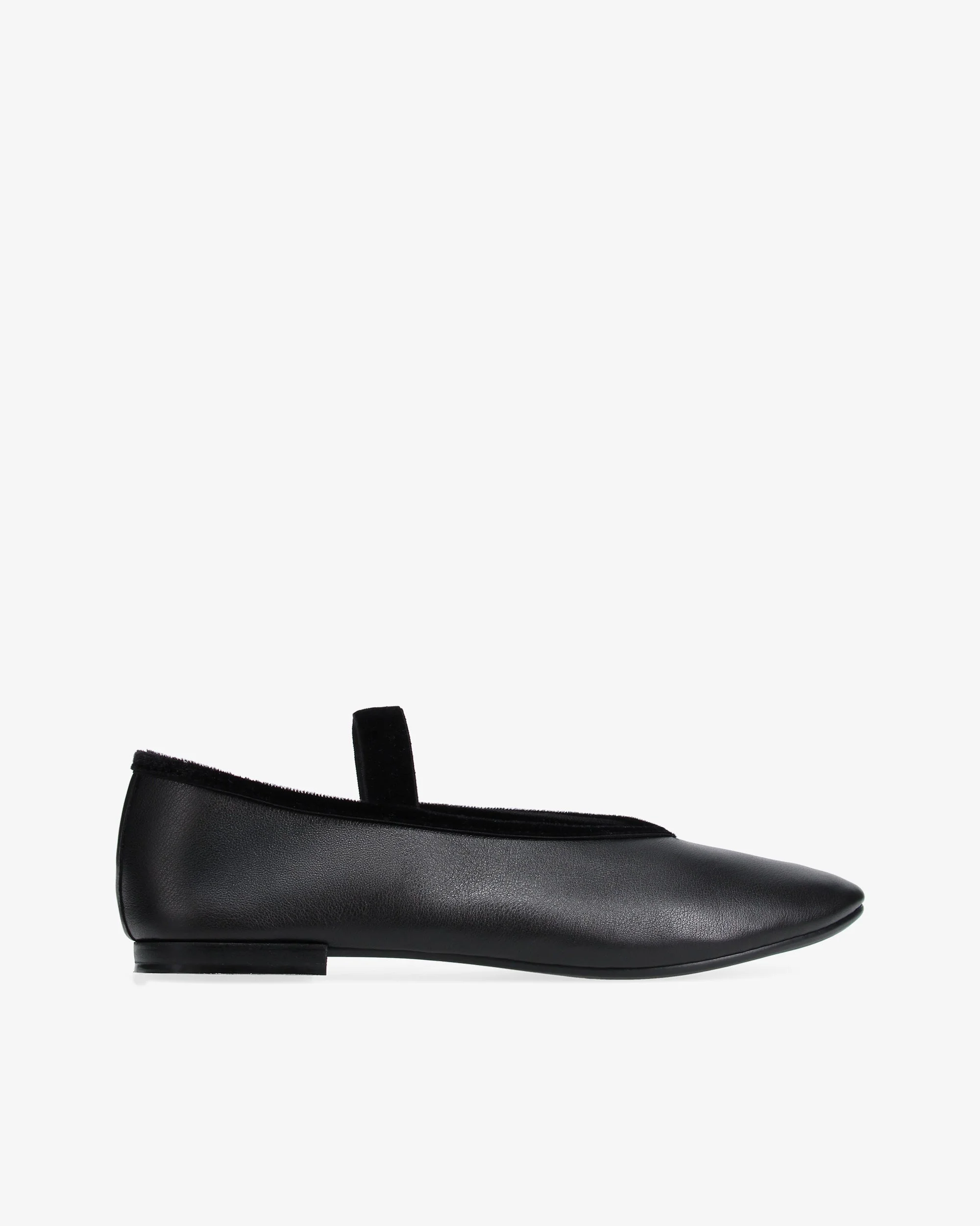 Inspired by the enveloping lines and oval neckline of the Lilouh, this variation of our emblematic ballet flat completes Repetto's offer of flat Mary-janes. Made in France using the artisanal stitch-and-return know-how, the Lilouh Mary-janes feature elegant details with an elastic strap and velvet trim, for a feminine, casual look. Material: Cowhide Color: Black Heels height: 1cm Original country: France Details: Cowhide leather insole. Cotton lining. Leather wrapped heel. Stitch-and-return. Natural rubber sole. Benefits of the selected manufacturing process: Stitchandreturn is the historical manufacturing process of Maison Repetto, developed by Madame Rose Repetto in 1947. The sole is sewn inside out before being turned inside out. This is an obvious way to create a flexible and emotional model. Ref: V4233VE-410-35