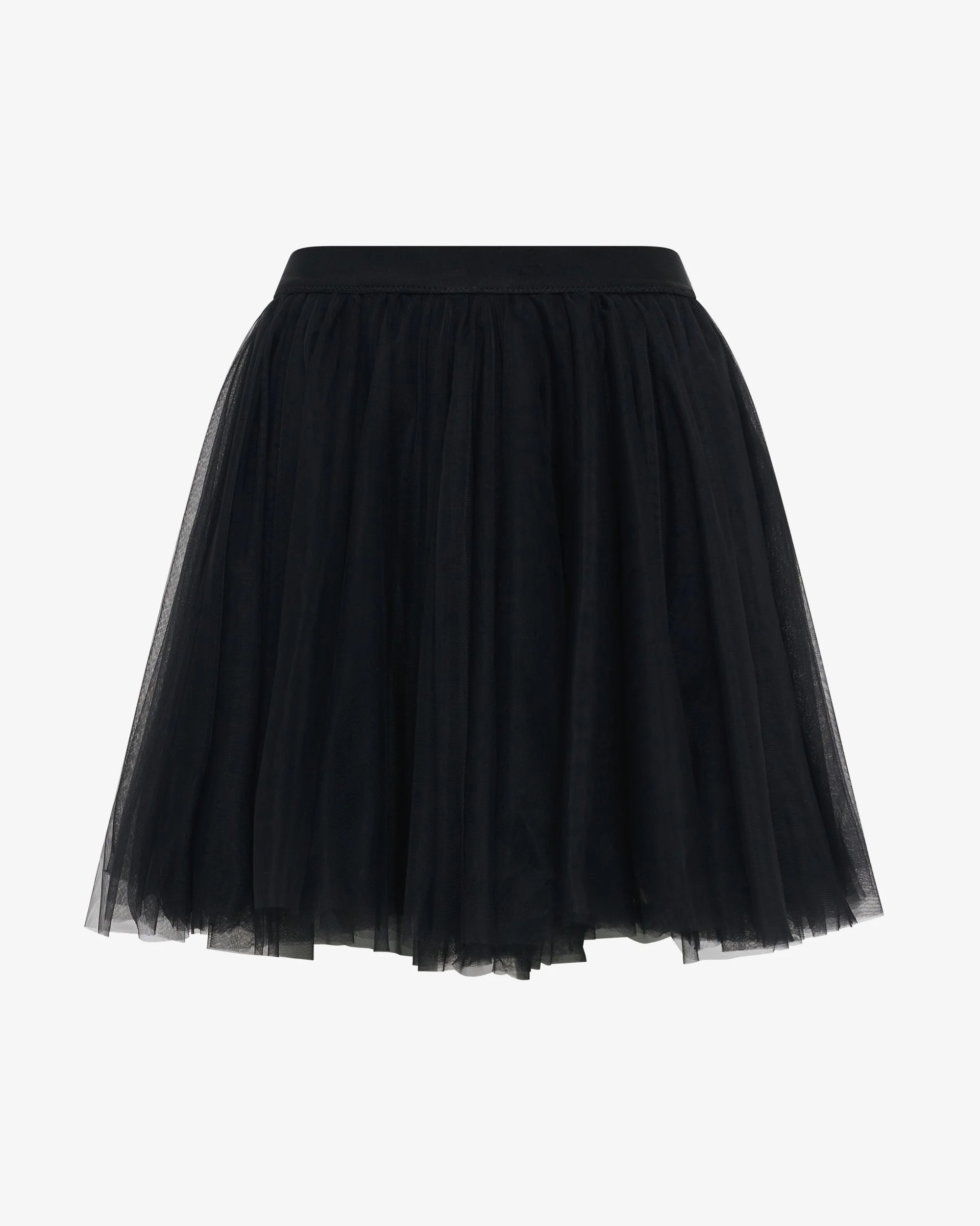 Fine and airy tulle fabric, with a slight shimmering effect, paired with a lightweight and fluid lining for opacity Material: Polyamide Main : 100% Polyamide Lining : 100% Viscose Color: Light Gold Details: Our urban and sophisticated interpretation of the dance skirt reinterpreted in a mini version. Lightweight and fluid, featuring a satin elastic waistband, it enhances every movement for a modern and feminine silhouette. • Mini length: 43 cm • Satin elastic waistband • Inner short lining for comfort and opacity Ref: R0308-410-XS