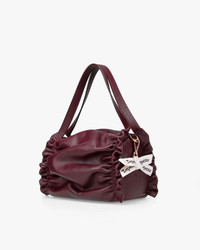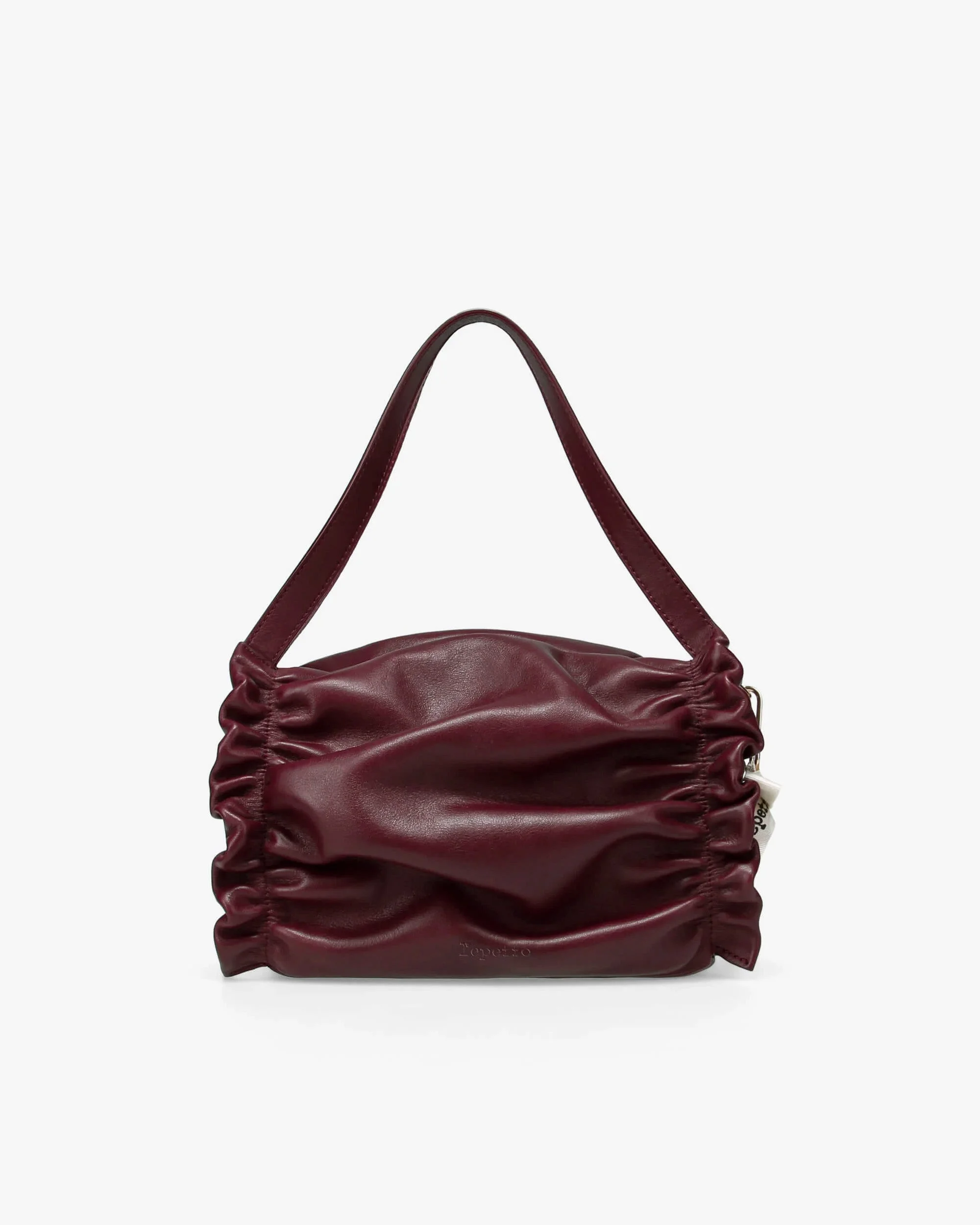 The new Opera bag, an ode to the heritage of the Maison Repetto. Supple lines, soft leather and pleated details express the grace and femininity emblematic of the ballet world. Its round, generous shape draws its inspiration from the iconic design of dance bags. Made in Italy from quality leathers lined with satin, this new model can be carried by hand or crossed body. The Opera bag is signed with a removable grosgrain bow, delicately underlining its unique style. Material: Nappa calfskin Color: Deep wine Dimensions: Height 20 cm x Width 12,5 cm x Depth 10 cm Carried: Shoulder and Hand Details: Magnetic closure on top. Pink satin lining. Debossed logo. Gold metal trims. Inside zipped pocket. Removable 100 cm strap. Disclaimer: Each piece of leather we select is unique. As a result, natural leather can vary in hue, texture and roughness. Ref: M0776VE-1415 Product details Magnetic closure on top. Pink satin lining. Debossed logo. Gold metal trims. Inside zipped pocket. Removable 100 cm strap.
