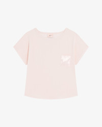 This oversized t-shirt goes perfectly with your movements thanks to its loose shape and its soft knit. Its scoop neckline highlights the head. Its stretch cotton fabric is soft and comfortable. Material: Stretch cotton Composition: 95% Cotton - 5% Elastane / Pocket: 100% Polyester Color: Chalk pink Original country: Portugal Details: Scoop neckline. Oversized shape. Satin pocket. Ref: S0575S-1444-S Product details Scoop neckline. Oversized shape. Satin pocket.