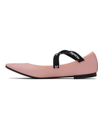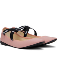 Buffed calfskin Mary Jane-style ballerina flats in pink. · Logo-printed crisscrossing elasticized straps at vamp · Mesh trim at collar · Buffed leather lining · Treaded rubber sole Supplier color: Deep pink Upper: calfskin. Sole: rubber. Made in France 251296F118108