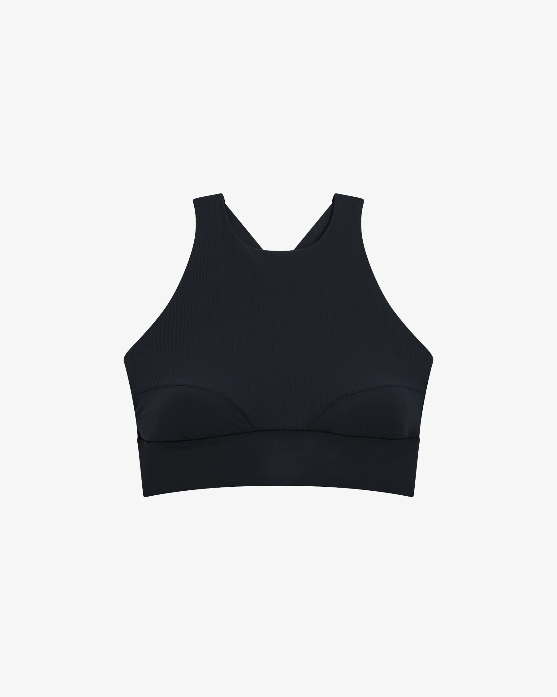 This sports bra in ribbed technical fabric combines practicality and femininity. The ultra-stretch B. Recycled ultra-stretch fabric and the integrated breast padding ensures a very good support of the upper body. This bra is suitable for activities of all intensities. Material: Recycled technical mesh Composition: Rib: 59% Recycled polyamide - 41% Elastane / Lining - Jersey: 58% Recycled polyamide - 42% Elastane Color: Black Details: Bra in B. Recycled ribbed fabric. Integrated padding. Elastic straps. Cut-outs under the chest. Elastic band at the bottom of the bra. Repetto label at the back. The model is 1,75m and wear a S size. Ref: S0566-410-XS Product details Bra in B. Recycled ribbed fabric. Integrated padding. Elastic straps. Cut-outs under the chest. Elastic band at the bottom of the bra. Repetto label at the back.