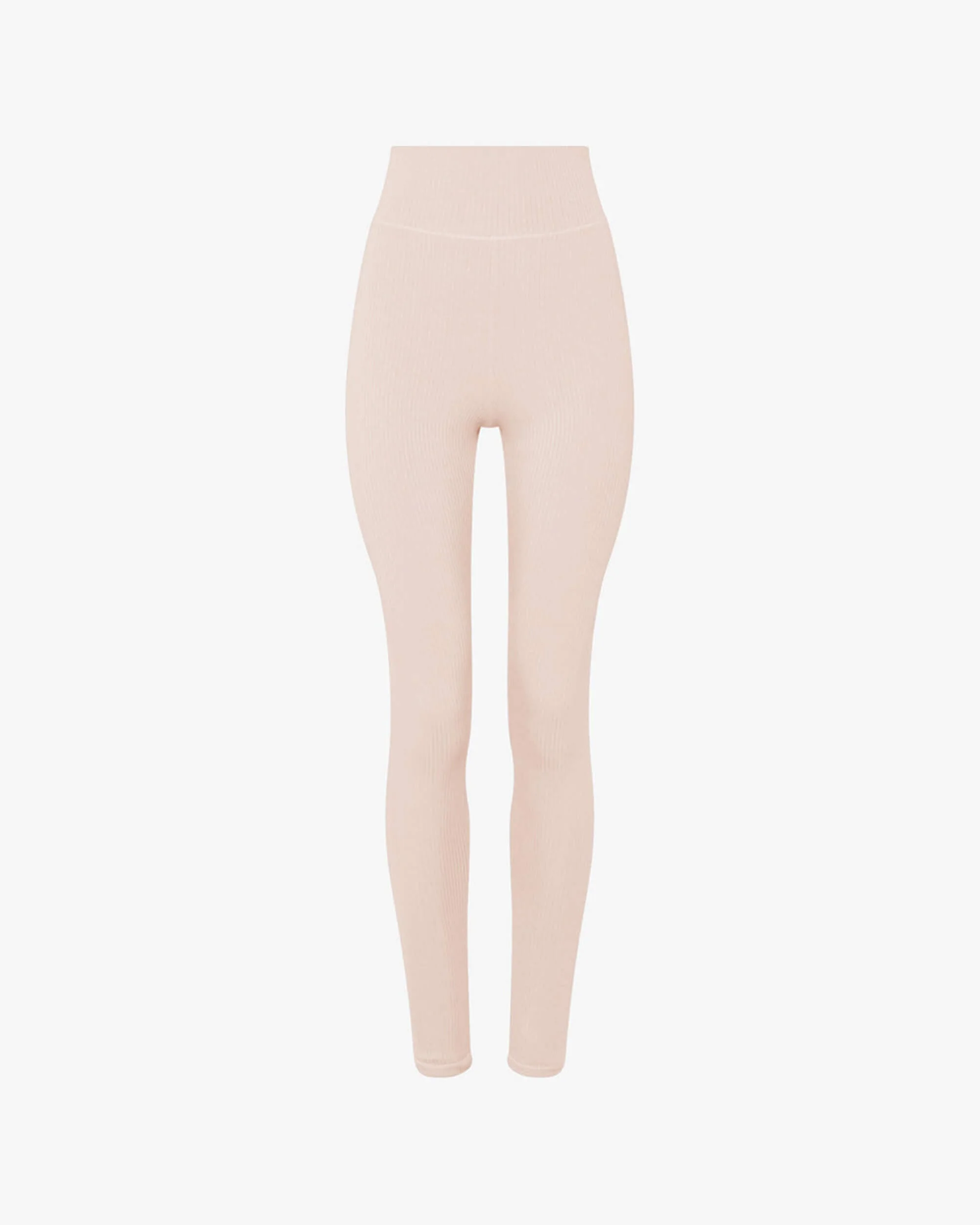 Designed in a soft and stretchy ribbed fabric, these leggings are inspired by the warm-up tights used in dance. Very comfortable, they are a must for Yoga, Pilates or dance practice. Extra-high waistband that can be turned inside-out for low-waist wear. Ankle length Fully lined for opacity and comfort.Material:Viscose Ecovero Composition:Main : 96% Ecovero Viscose - 4% Elastane Lining : 96% Ecovero Viscose - 4% Elastane Color:Petal pink Original country:Tunisia Ref: S0551-047-XS Product details EcoVero viscose rib leggings. Extra-high waist. Fully lined. Designed to arrive to the ankle. R logo at the bottom of the leg. Repetto label on back.