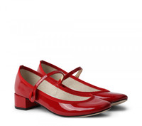 Rose is Repetto's emblematic Mary Jane shoe. With its strap and small heel, it sports a baby-doll style married to a hint of retro spirit. Material: Patent leather Color: Flammy red Heels height: 3 cm Original country: France Details: Grosgrain-edge Mary Janes heels shoes. White sheep leather insole. Ecru fabric lining. Leather wrapped heel. Leather sole.