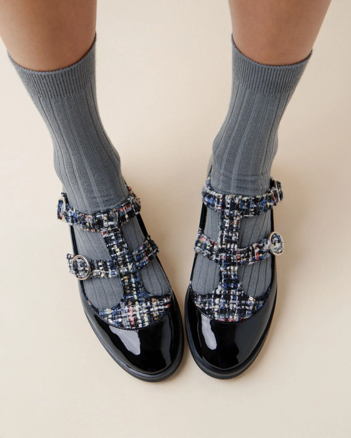 Inspired by the retro elegance of T-bar shoes, the Salome College reinterprets this classic with a distinctly modern twist. Featuring an intricate strap design that ensures perfect foot support, it seamlessly combines style and comfort with a confident allure. Its sole, an innovation of the House, adds a structured and contemporary touch. A style of bold refinement for a unique and modern elegance. Material : Patent leather/ Textile Color : Black Heels height: 1,5 cm Country of origin: France Details: Cowhide leather insole. Leather lining. Stitched and returned then cemented. TPU sole. Benefits of the selected manufacturing process: Stitch-and-return is the House's historic manufacturing process, perfected by Madame Rose Repetto in 1947. The sole is sewn to the top of the shoe, inside out, before being turned inside out. This technique gives the shoe unequalled suppleness and comfort. The rubber sole used on this model provides optimum resistance. Ref: V4243VTWPD-410-34 Product details Cowhide leather insole. Leather lining. Stitched and returned then cemented. TPU sole.