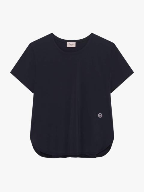 This airy and ultra-fine fabric feels extremely soft and light. Its silky-like touch grives a delicate and feminine look, and a promise of lightness and comfort during practice Material: Polyamide 76% Polyamide - 24% Elastane Color: Silver Details: Designed in an ultra-soft and silky-like fabric, this short sleeve top can be worn over a bra for practice. It can also be matched with a classic pant for effortless, everyday wear. - Round neck - Straight fit with rounded cutouts on the side - Short sleeve Ref: S0692-410-XS