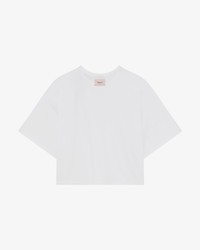 This crew-neck tee-shirt features a elegant and contemporary look with its oversize fit, crop cut, and large dropped sleeves. Embellished with a large ribbon to tie on the shoulder, this it-piece is a modern inspiration of the ballet shoes. Rounded neck Short and large sleeves Ribbons to tie on the shoulderMaterial:Coton Bio Composition:100% Organic Cotton Color:Blanc Original country:Portugal Ref: S0679-050-XS Product details Made of organic cotton, this mid-weight jersey knit is extra-soft and comfy for an everyday comfort.