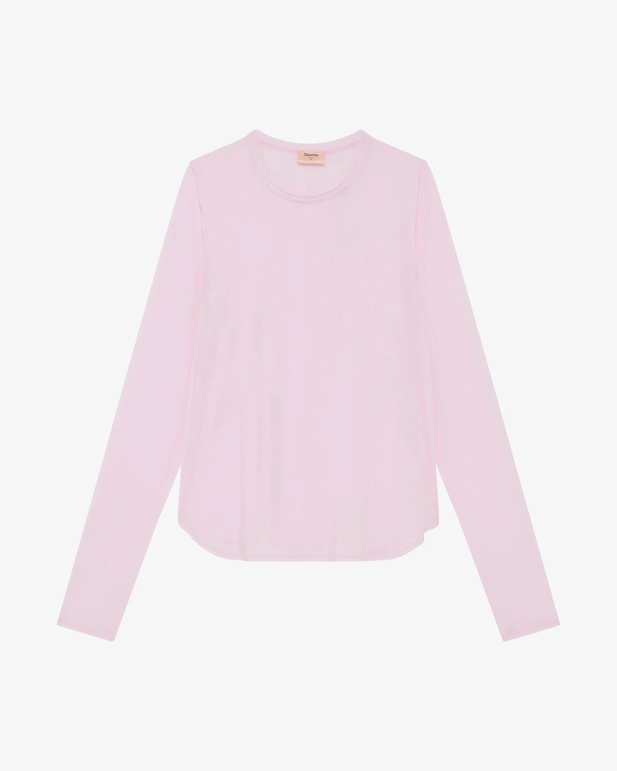 Designed in an ultra-soft and silky-like fabric, this long sleeve top can be worn over a bra for practice. It can also be matched with a classic pant for effortless, everyday wear. Round neck Straight fit with rounded cutouts on the side Long sleeves with thumb-holesMaterial:Maille Active Silk Composition:76% Polyamide - 24% Elastane Color:Bubble Gum Original country:Tunisia Ref: S0687-1330-XS