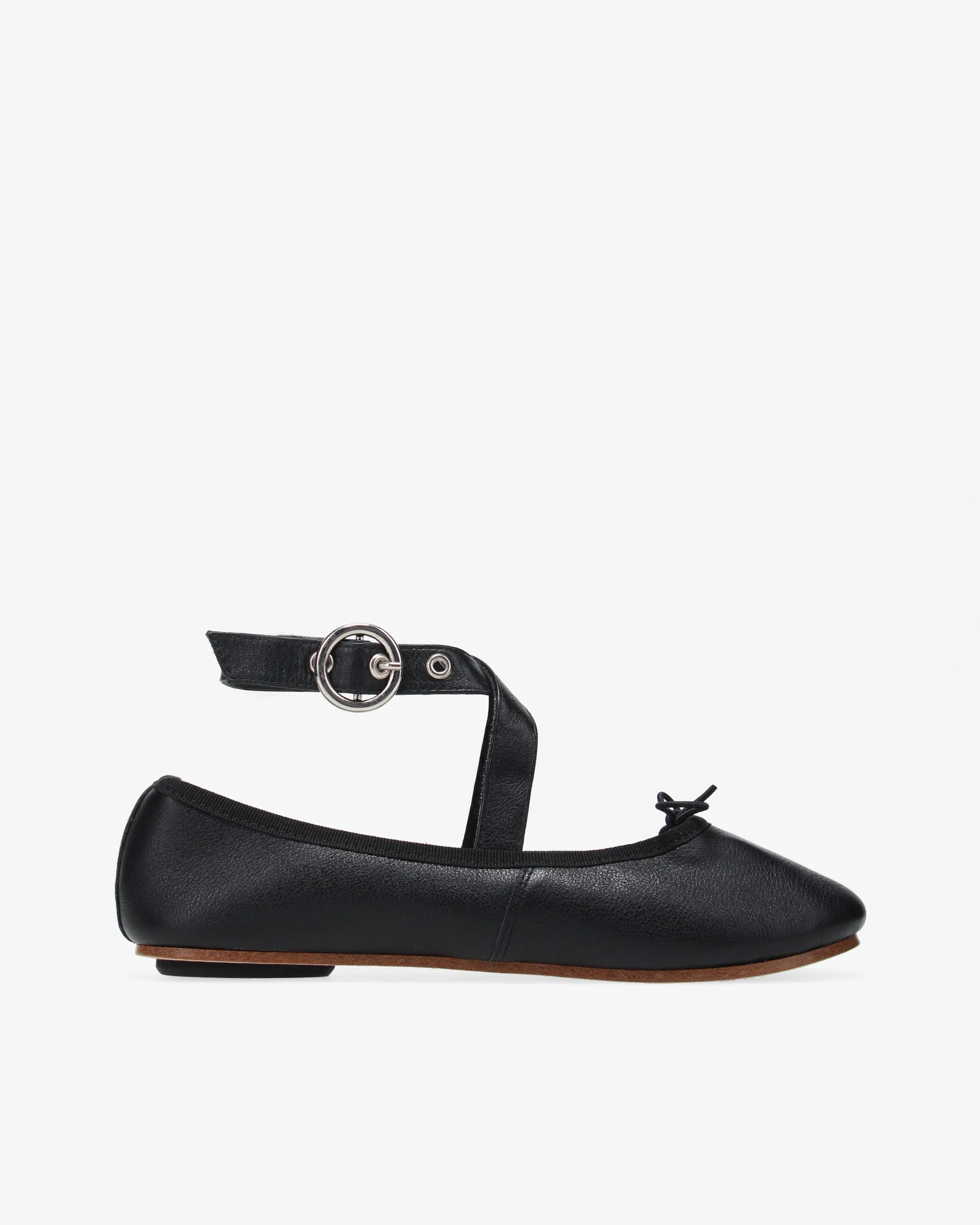 Repetto revisits its iconic Sophia ballet flat from sole to ankle! The ribbons are swapped for leather straps and a metal buckle, giving it a rocker look. Thanks to its sole with rubber inserts, the Sophia Belt ensures support and comfort, values dear to the House of Repetto. These ballet flats with urban style proudly bring a touch of classical dance in the city, for a graceful and singular look. Material: Cowhide Color: Black Heels height: 0 cm Original country: Tunisia Details: Ballerinas with leather straps. Cowhide leather insole. Cotton lining. Leather sole with rubber inserts. Ref: V4232VE-410-34 Product details Ballerines avec brides en cuir. Premiere de proprete en cuir de vachette. Doublure en coton. Semelle cuir avec inserts gomme.
