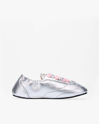 At the crossroad of a city sneaker and a ballet shoe, the Tennis Silk is inspired by ballet flat details. Its double satin laces, thin sole and pleated collar, recall the world of dance at the heart of the House's heritage, offering femininity and incomparable comfort. Material : Cowhide leather Color : Silver Heels height: Without heel Country of origin: Tunisia Details: Cowhide leather insole. Lambskin leather lining. Sacchetto construction. Rubber sole. Benefits of the selected manufacturing process: The noble and complex sacchetto construction is a manufacturing technique in which the soft leather of the lining is sewn to the leather of the shoe's upper, forming a small bag ('sacchetto' in Italian). The supple leather wraps around the foot like a glove, offering a unique level of comfort unique to the House of Repetto. Ref: V4230VEMD-020-34 Product details Cowhide leather insole. Lambskin lining. Welded construction. TPU sole.