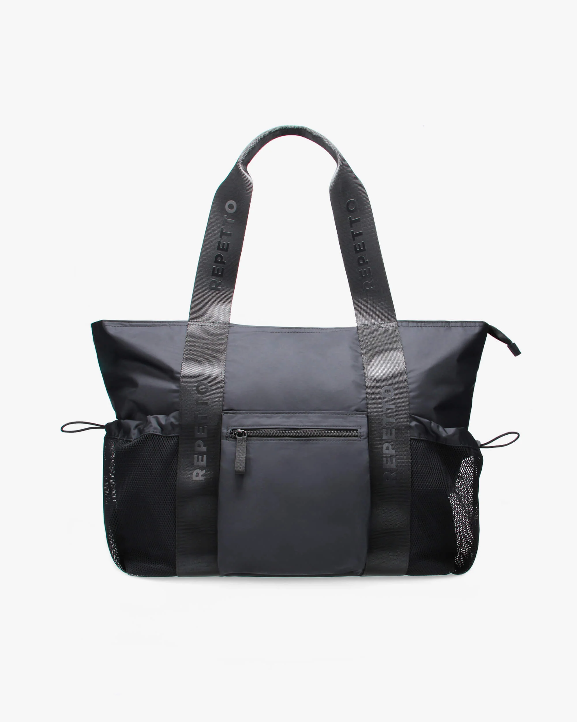 This large nylon tote is perfect for carrying your belongings, featuring a small zippered front pocket for easy access to small accessories, as well as two side pouches. Its modern and functional design makes it the perfect accessory. Material : Nylon Color : Black Dimensions : Height 32 cm x Width 55 cm x Depth 18 cm Carried : Shoulder Details : • Shoulder carrying • Zipper closure • Water-repellent nylon • REPETTO logo on straps • Two large mesh outside pockets Nylon lining. Ref: B0382N-410