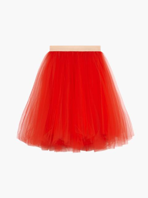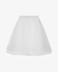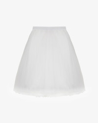 Inspired by the iconic Repetto tutu, this fluid and airy skirt represents the urban version of the dance tutu skirt. Made of fine, flowing tulle with opaque lining, it suggests all the moves for a light and modern silhouette. Material: Tulle Composition: 100% Polyamide / Lining: 100% Acetate Color: White Details: Tutu skirt length 68cm. Two layers of tulle. Graphic elastic band at the waist. Inner lining. Metal circle with the R logo. The model is 1,76m and wear a S size. Ref: R0300T-050-XS Product details Tutu skirt length 68cm. Two layers of tulle. Graphic elastic band at the waist. Inner lining. Metal circle with the R logo.