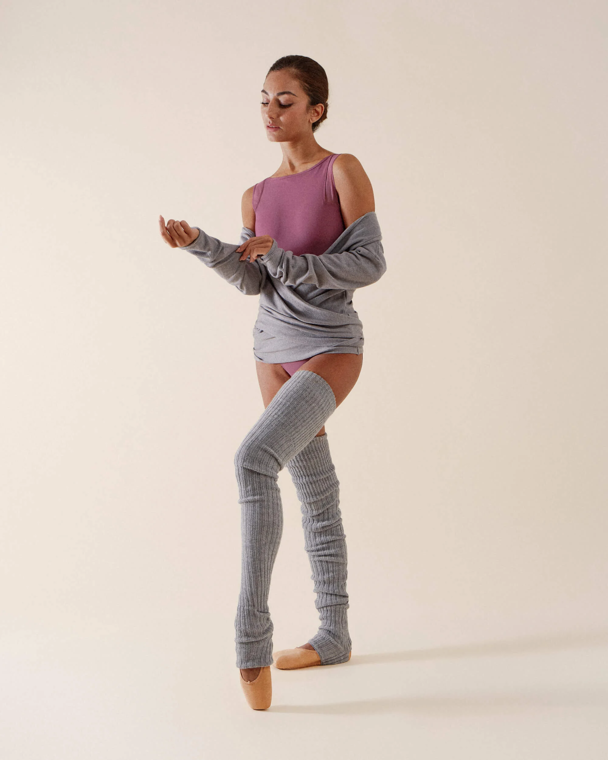 Large legwarmers with gaiter feet, recommended for warming up the legs. Thanks to their fine and warm mesh, they are ideal to keep the legs warm between two exercises, or during a rehearsal. Material: Ribbed knit Composition: 100% Acrylic Color: Mottled light grey Original country: France Details: Long legwarmers. Gaiter foot. Ribbed knit. Ref: A024-293 Product details Long legwarmers. Gaiter foot. Ribbed knit.